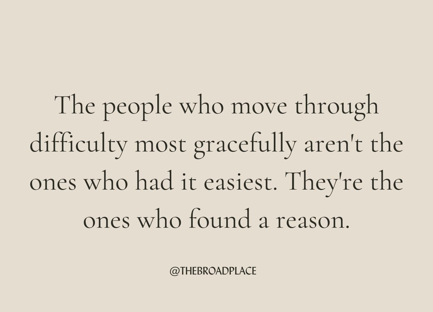 The people who move through difficulty most gracefully are rarely the ones who had the easiest circumstances. They’re the ones who found a reason. Not a silver lining. Not a forced reframe. A genuine sense that what they were going through was pointing them somewhere, teaching them something, making them into someone more capable of contributing to the world around them. This is not a passive thing. It is an active choice made under pressure. And it is one of the most powerful things I have ever witnessed in another human being.